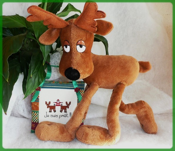 Ce splendide caribou en peluche vient tout droit du Canada, en passant par la Chine pour sa fabrication (lol) ! Offert par fille-et-gendre-bonbons qui n'ont lu l'étiquette qu'à leur retour en France ... çà nous a bien fait rire ...