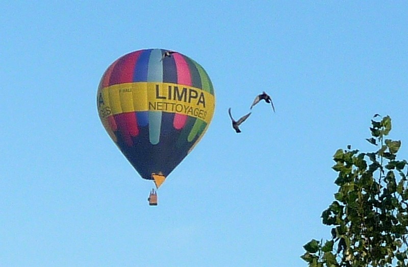 Ciel ! une montgolfière à deux pas, non, deux coup d'ailes de moi !