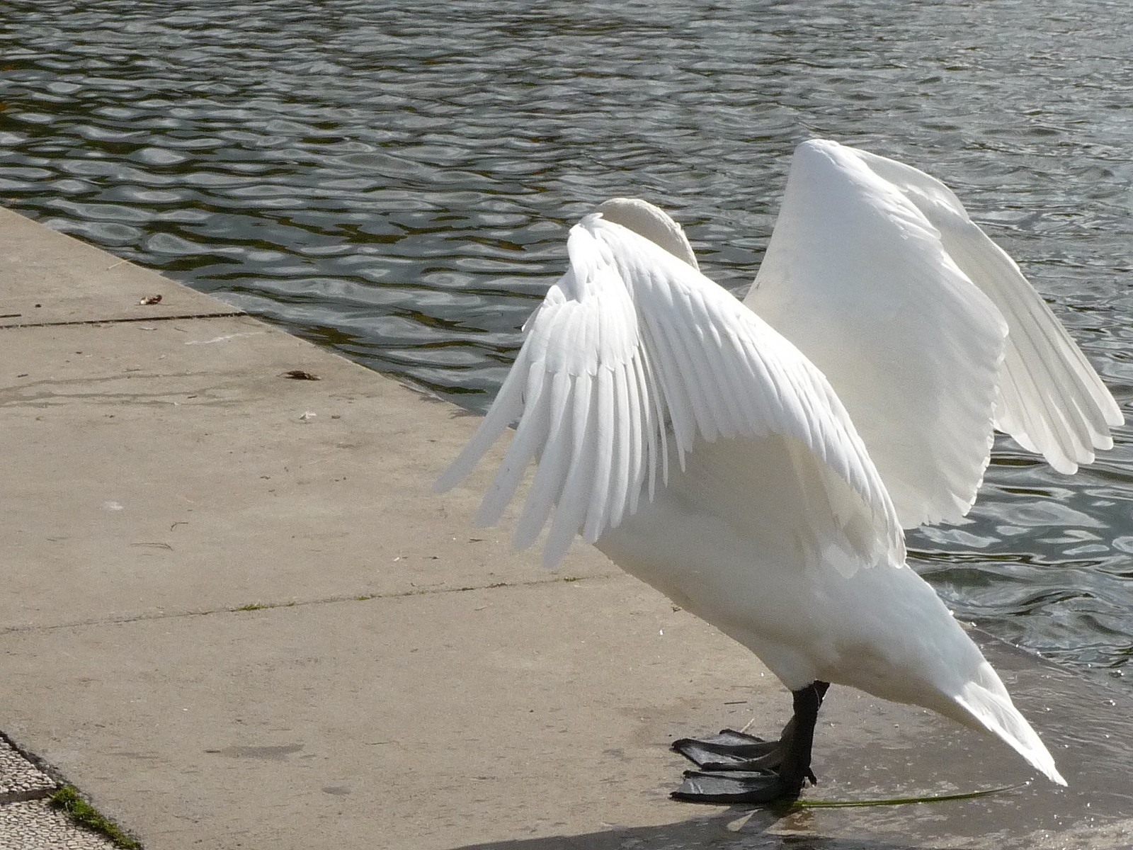 Et hop-là, on remonte voir Mamychachat accroupie et on l'éclabousse copieusement ! Mort de rire le cygne ...