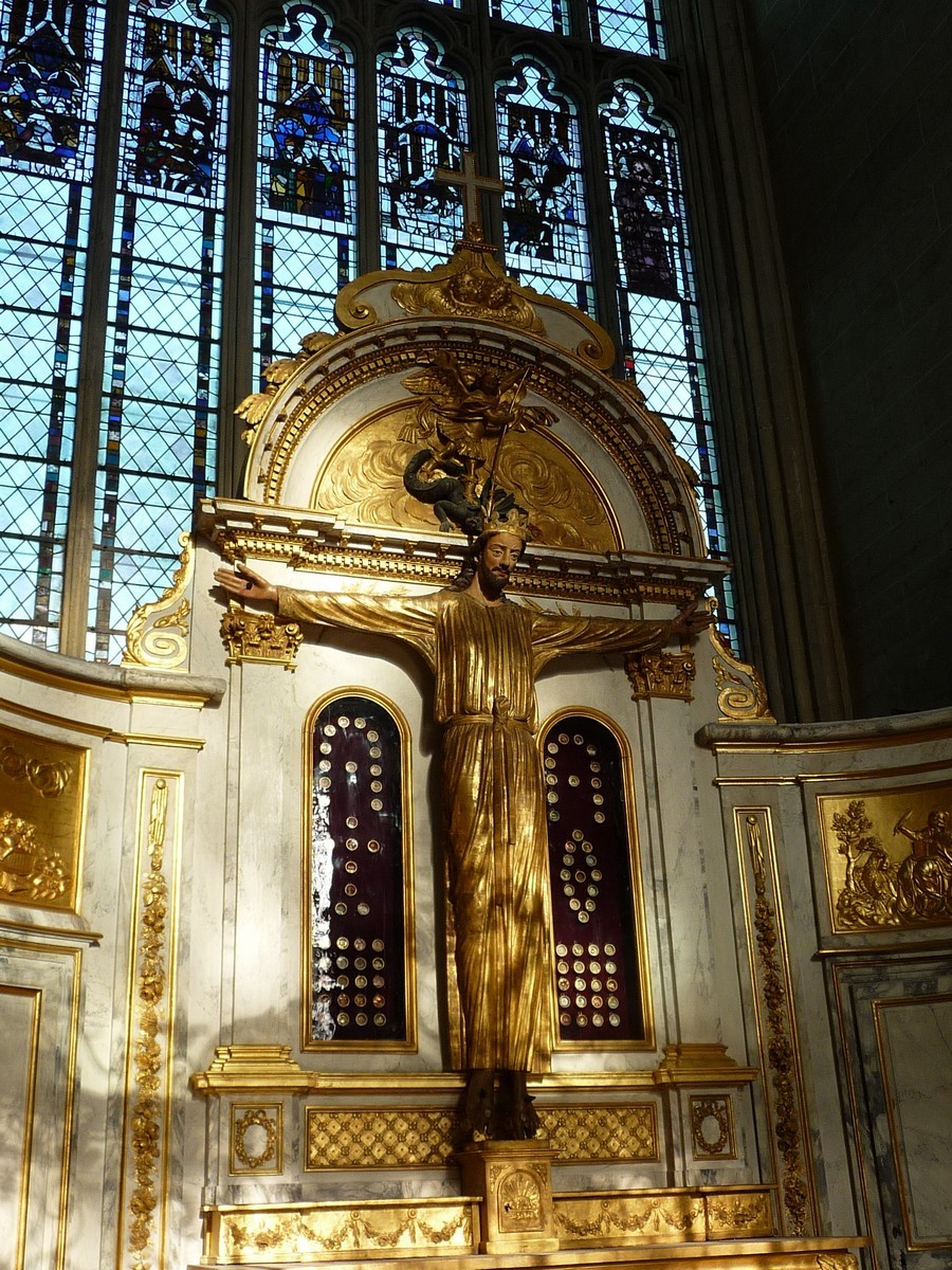 Nous retrouvons la chapelle du Saint-Sauve, dite aussi Chapelle St-Michel (qui terrasse le dragon !). Ce christ byzantin mesure 2m75.