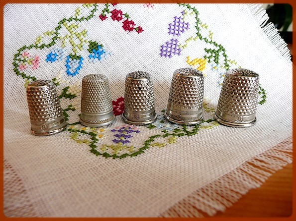 De gauche à droite, taille 9, 8, 7 (là, il en manque quelques uns, où sont-ils donc passés ?) puis le 3 (celui qui ne me quitte pas actuellement) et le 2, celui de maman ...