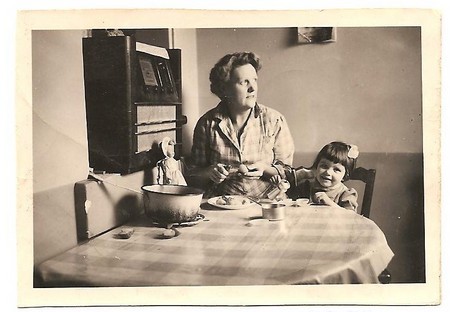 Toute heureuse avec ma tite dinette et ma poupée ... et en face de nous deux, derrière son grand appareil photo, mon papa qui savait super bien les prendre et les développer.