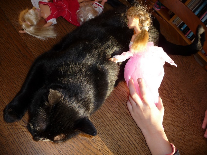Elle pourrait très bien se nicher sous un lit, sur une étagère, au fond d'une armoire mais non ... elle aime jouer avec Juliette.