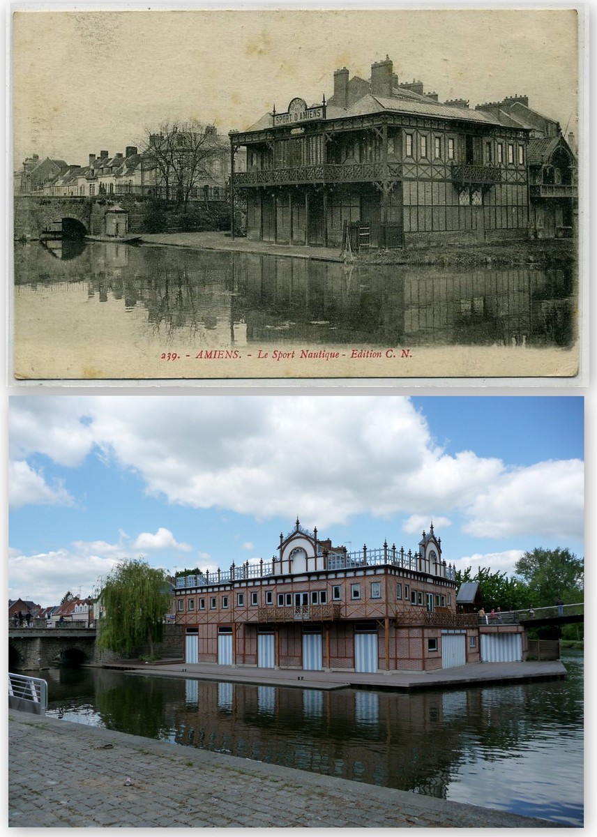 Cet endroit est l'emplacement du marché sur l'eau. On y vend les produits cultivés dans les Hortillonnages. Les marchands arrivent dans leur barque à fond plat comme sur cette photo prise dans ce site (clic)