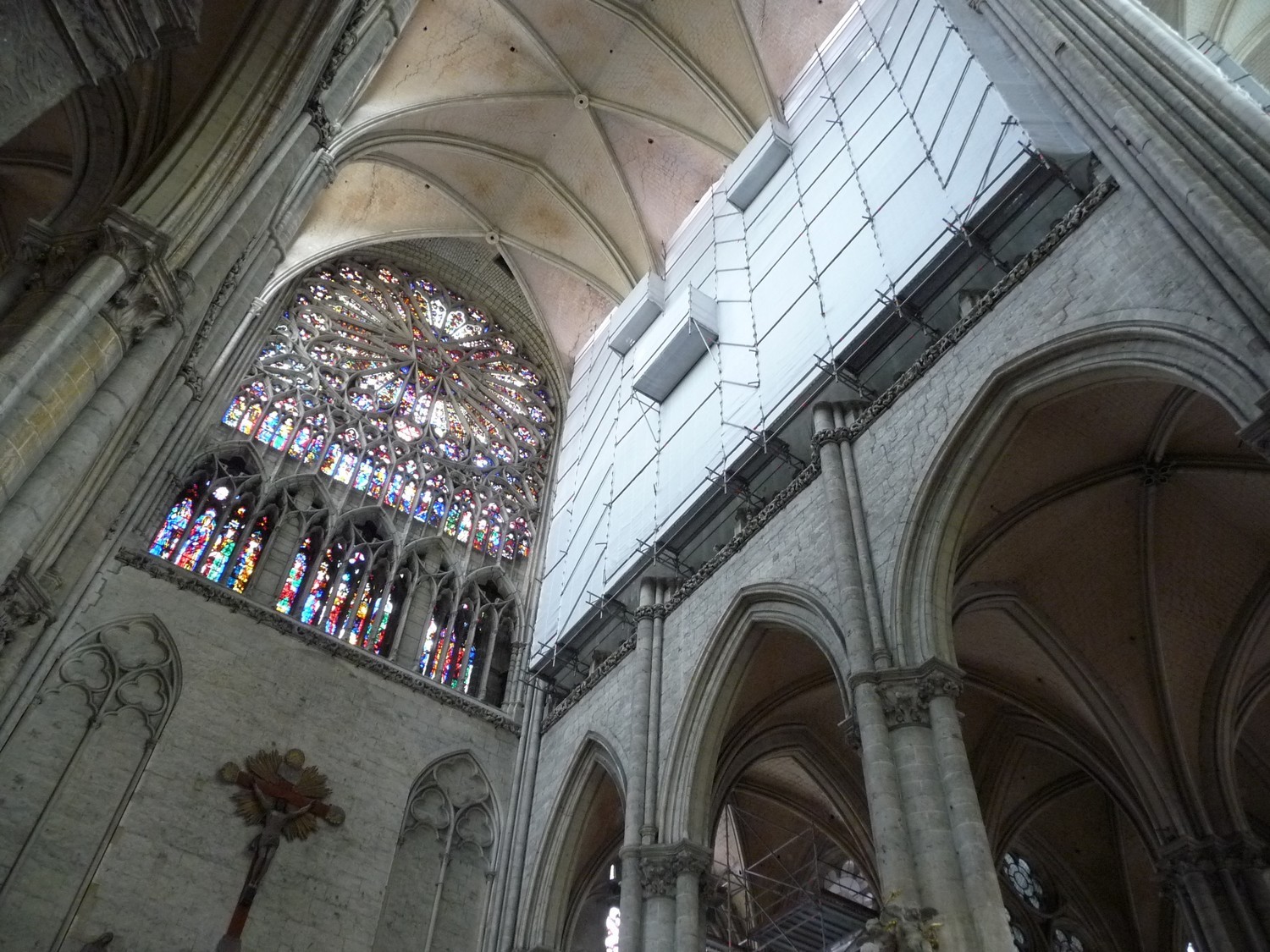 Les photos sont dans l'ordre de ma visite, voici les échafaudages. On s'attaque aussi cette fois à l'intérieur qui se fissure de partout, çà bouge, çà s'écarte et un jour, si on ne fait rien ! boum badaboum ...