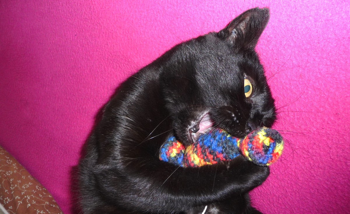 Et Pépita qui ne lâche plus son bonbon en laine !