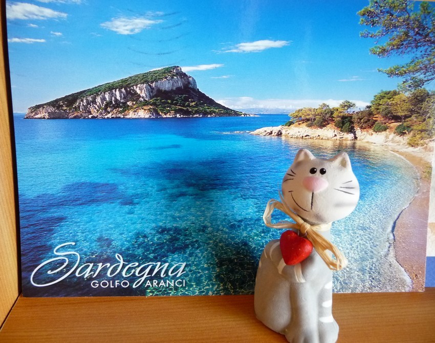J'ai reçu aussi une jolie carte de Sardaigne de la marraine de Pépita, Marie-Christine (Chipie dans mes commentaires) :