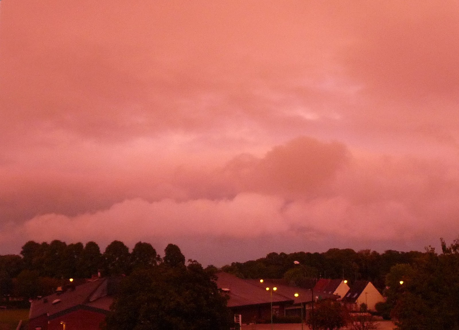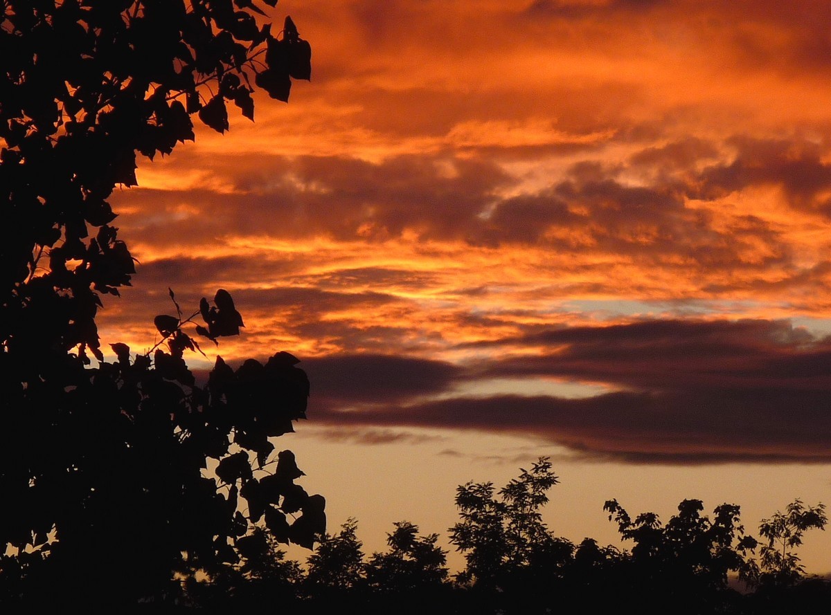 Non zoomée et toujours non retouchée, ciel mauve-violet ! si vous cliquez, vous verrez un vol de canards ???? déjà ? ils sont très haut et filent vers l'ouest !