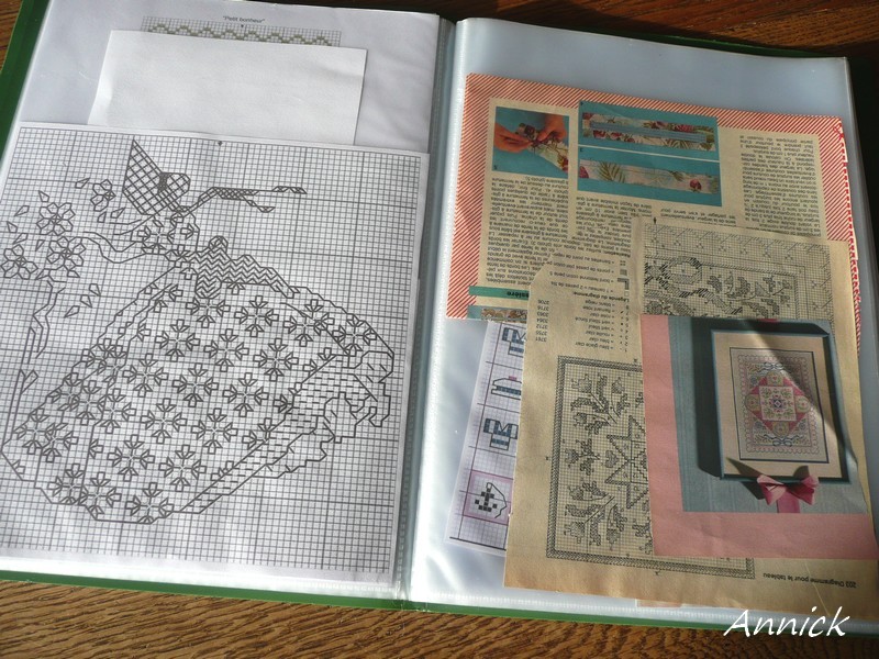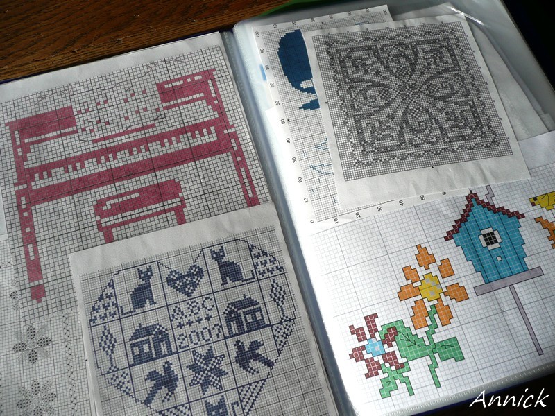 Et mes grilles ? deux classeurs à chemises plastifiées, c'est bien commode. Un pour les broderies déjà faites: