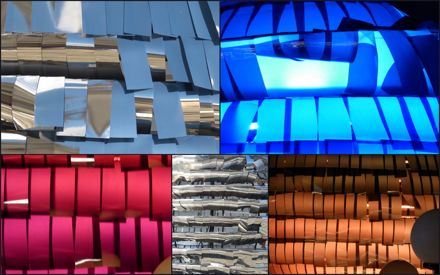 et je me suis amusée, le jour (en gris) et la nuit, tout en couleur, avec ces 1200 écailles d'un matériau voltigeant sous le vent ...