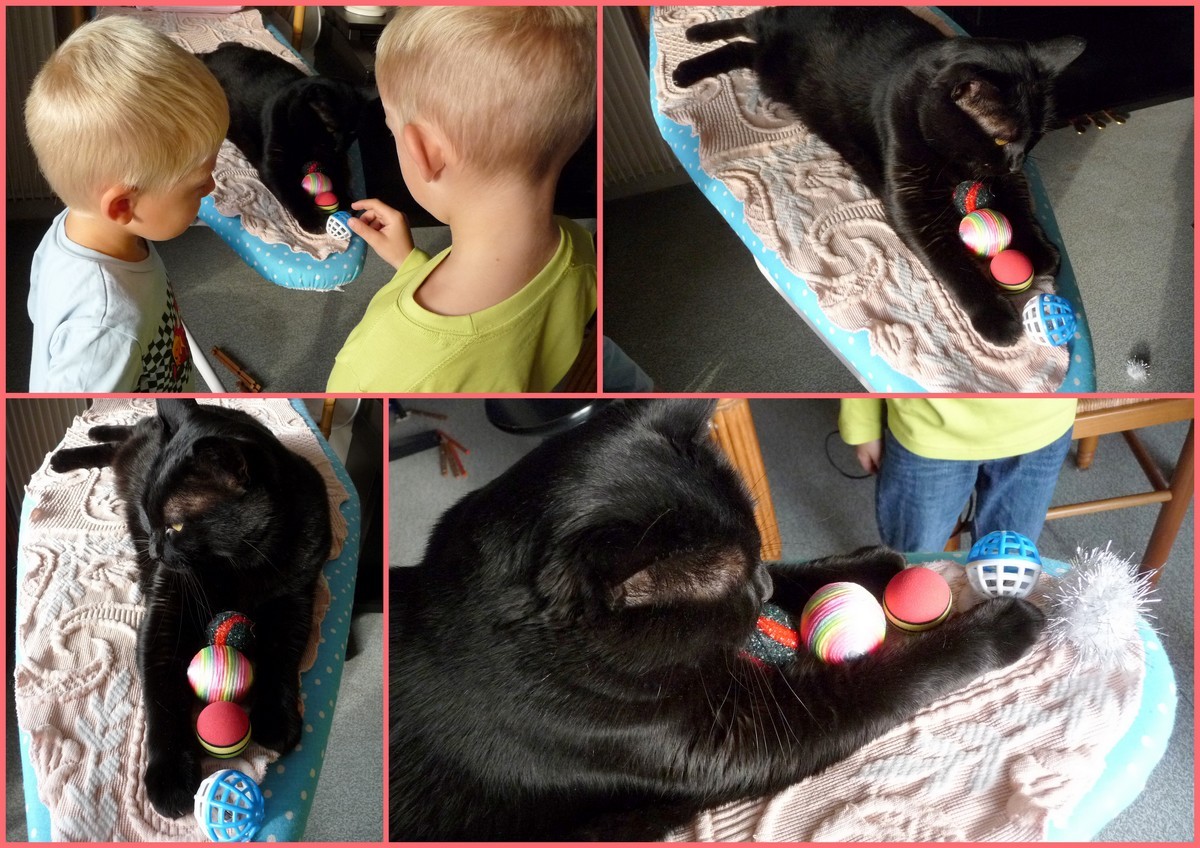 En haut à droite, en 2011, ils étaient bien jeunes. Pépita était très docile avec mes petits enfants, j'ai appris à tous les sept à comprendre et respecter ces chers félins.
